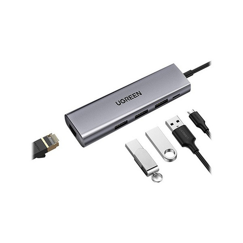 هاب 5 پورت USB 3.0 یوگرین مدل CM475-60554 با 3 پورت USB 3.0 و 1 پورت LAN و Type-C PD