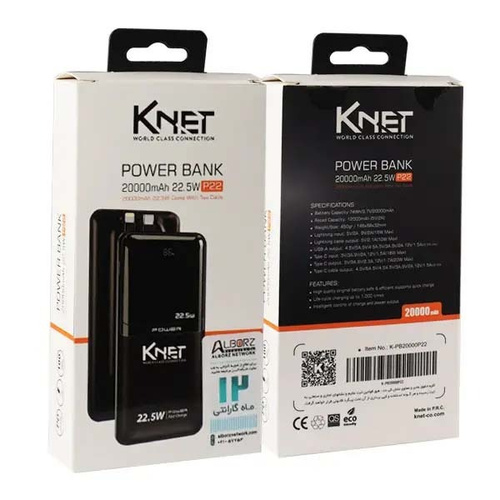 پاوربانک 22.5 وات کی نت مدل K-P22 ظرفیت 20000 میلی آمپر ساعت