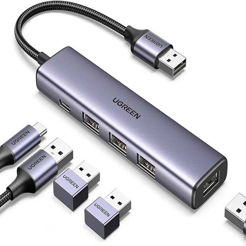 هاب 5 پورت USB 3.0 یوگرین مدل CM475-60554 با 3 پورت USB 3.0 و 1 پورت LAN و Type-C PD