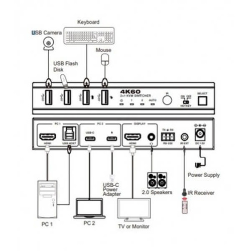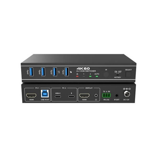 کی وی ام سوئیچ 2 پورت HDMI 2.0/USB 3.0 فرانت مدل FN-K3H21 با رزولوشن 4K@60 به همراه ریموت + RS232